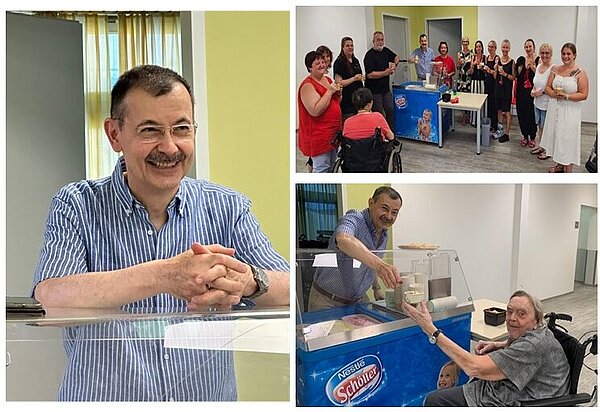 02. Juli 2025Wenn die Temperaturen die 30 Grad Marke übersteigen, ist ein runder Geburtstag des Pfarrers genau richtig. Pfarrer Norbert Stahl feierte seinen 60. Geburtstag und zu diesem Anlass lud er alle Bewohnende und Mitarbeiter zu einem Eis ein.