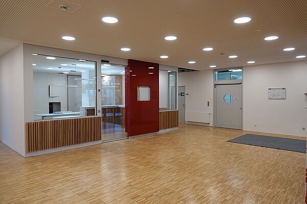 Empfang mit viel Licht und Eichenholz