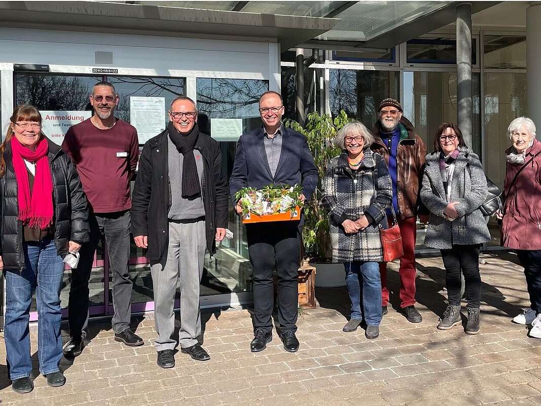 02. März 2022Die Gemeinde Köngen ist eine anerkannt faire Kommune. Die Anerkennung des Pflegestifts Köngen als "Faire Einrichtung" gab Anlass für einen Besuch vor Ort: Bürgermeister Ruppaner, eine Abordnung der Gemeinde und das Nachhaltigkeitsteam des Pflegestifts trafen sich zu einem Arbeitsessen.