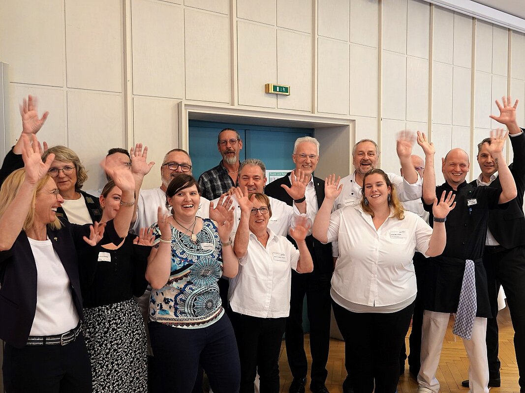 09. August 2023Ein letztes Gruppenfoto mit Peter Stoll und der Hauswirtschaft - die zur Verabschiedung ein wunderbares Catering beitrug - danke!