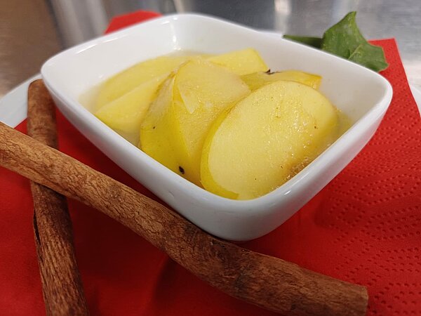 Unser engagiertes Hauswirtschafts- und Küchenteam hat die Quitten liebevoll verarbeitet, eingekocht und daraus eine köstliche Nachspeise kreiert. Diese wird unseren Bewohnerinnen und Bewohnern im Haus Unterland serviert – ein süßer Genuss, der Herzen wärmt.