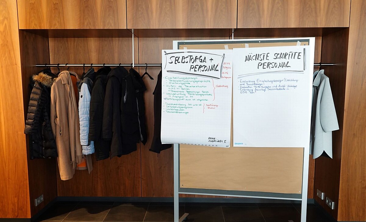 Acht Arbeitsgruppen widmeten sich der Fragestellung, wie der Anpassungsbedarf bei Prozessen, Kommunikationswegen und Kontrollaufgaben aussieht, wenn Teams ihre Arbeitsbereiche selbstbestimmt gestalten. Die Leitungen tauschten sich über Beispiele gelungener Selbstorganisation aus und identifizierten Teilprozesse als Baustellen für eine verbesserte Selbstorganisation.
