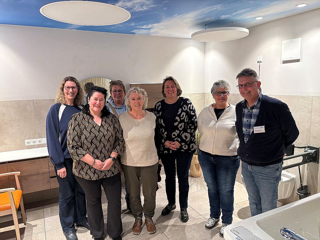 Großer Gesprächsbedarf bestand unter anderem zur Personalsituation sowie zu den räumlichen Gegebenheiten im Vergleich zum früheren Altbau. Bei einem Rundgang lernten die Besucherinnen das Wohlfühlbad, die hauseigene Produktionsküche sowie die wohnlich gestalteten Wohngruppen kennen.