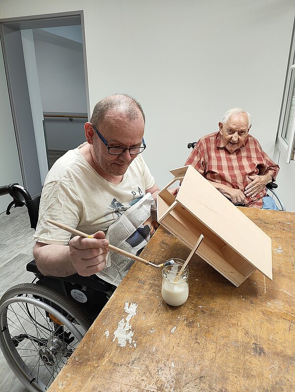 Technisches Geschick und Schreinerfertigkeiten stehen hier nicht im Vordergrund. Es ist die Gemeinschaft und so viel mitzuarbeiten, wie noch möglich ist. Im Alter lassen die feinmotorischen Fertigkeiten nach und die Finger sind nicht mehr so beweglich wie in jungen Jahren.