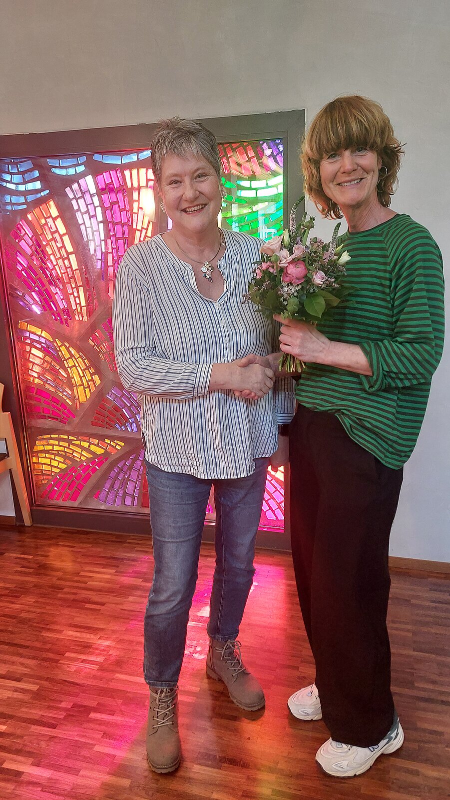 Ein besonderer Moment war die Verabschiedung von Frau Hannelore Giesin, die nach vielen engagierten Jahren in den wohlverdienten Ruhestand ging. Mit Blumen und herzlichen Worten wurde ihr Einsatz gewürdigt – ein bewegender Augenblick für das gesamte Team.