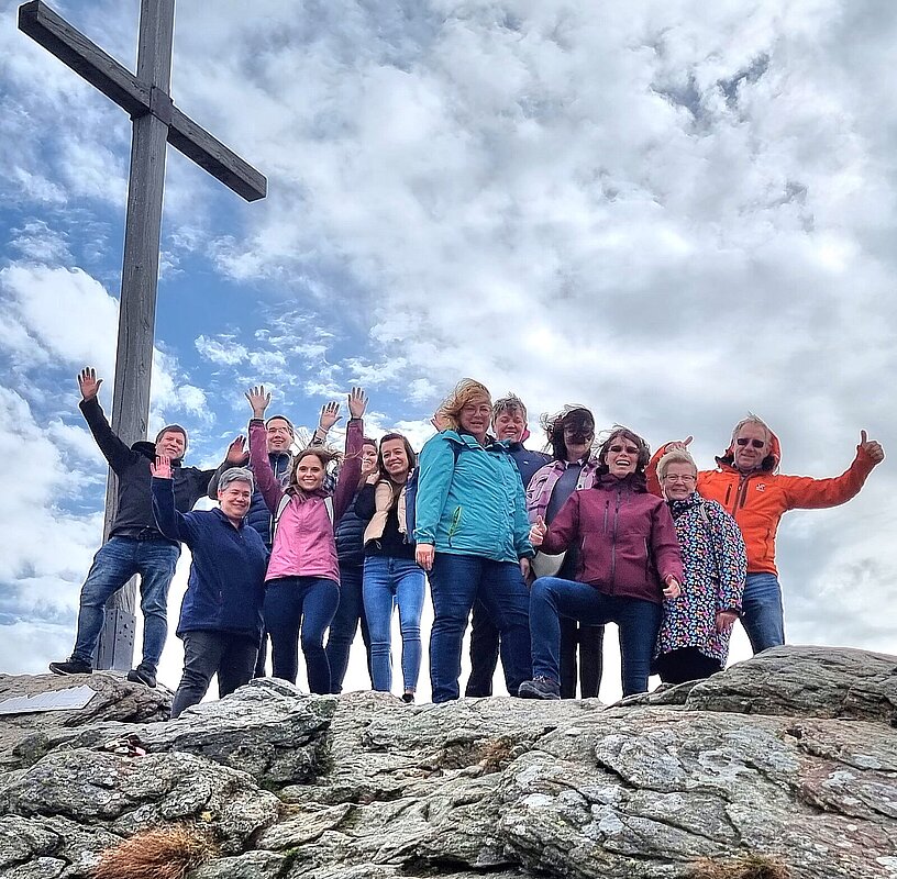 Hierzu fuhren wir mit der Gondel auf den höchsten Berg des Bayerwaldes, den großen Arber. Nach einem kurzen Aufstieg zum Gipfel und dem dortigen Rundwanderweg, hatten wir den besten Rundumblick, um die Dinge mal von oben zu betrachten.