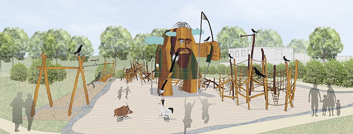 Hier im Bautagebuch mehr zum fantasievollen Spielplatz - mit dem Riesen mittendrin, das Riesengebirge ist ja schließlich nicht weit: