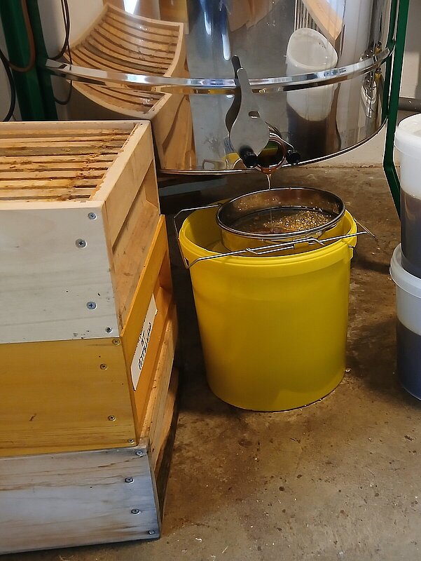 „Mal etwas tun, das man noch nie gemacht hat“, hatten sich Jan Christian Stoll, Nadine Schuster und Nicole Hintermeier vorgenommen. Zusammen mit Barbara Hipp, die seit 10 Jahren imkert, haben Sie die letzte Honigernte des Vereins in diesem Jahr übernommen. Sie haben Waben abgefegt, entdeckelt und geschleudert. Klebende Hände und ein Bad im Honigduft gehören dazu, doch schließlich waren fast 30 kg wertvoller Sommerblütenhonig bereit zum Abfüllen. Der Honig wird verkauft, um das Futter der Schulungsvölker am Lehrbienenstand zu finanzieren.