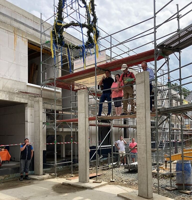 Insgesamt besuchten etwa 60 geladene Gäste das Richtfest, darunter Mitarbeitende aus allen Häusern der Region, Verantwortliche der Kommune und Nachbarn des Grundstückes.