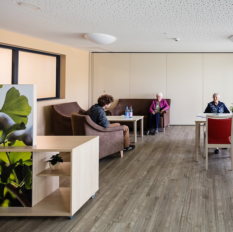 In unseren vier Wohnbereichen, auf den Terrassen oder unter dem Sonnenschirm vor dem Hauseingang treffen sich Bewohner, nehmen gemeinsam Mahlzeiten ein, feiern Geburtstag oder lesen Zeitung.
