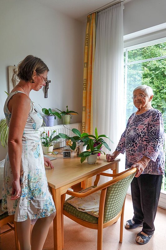 Unser geschultes Personal versorgt und begleitet Sie auch in der letzten Lebensphase. Wir arbeiten eng mit Ärzten, Pfarrerinnen und Pfarrern sowie ehrenamtlichen Hospizgruppen zusammen; Angehörige dürfen sich aufgehoben fühlen.
